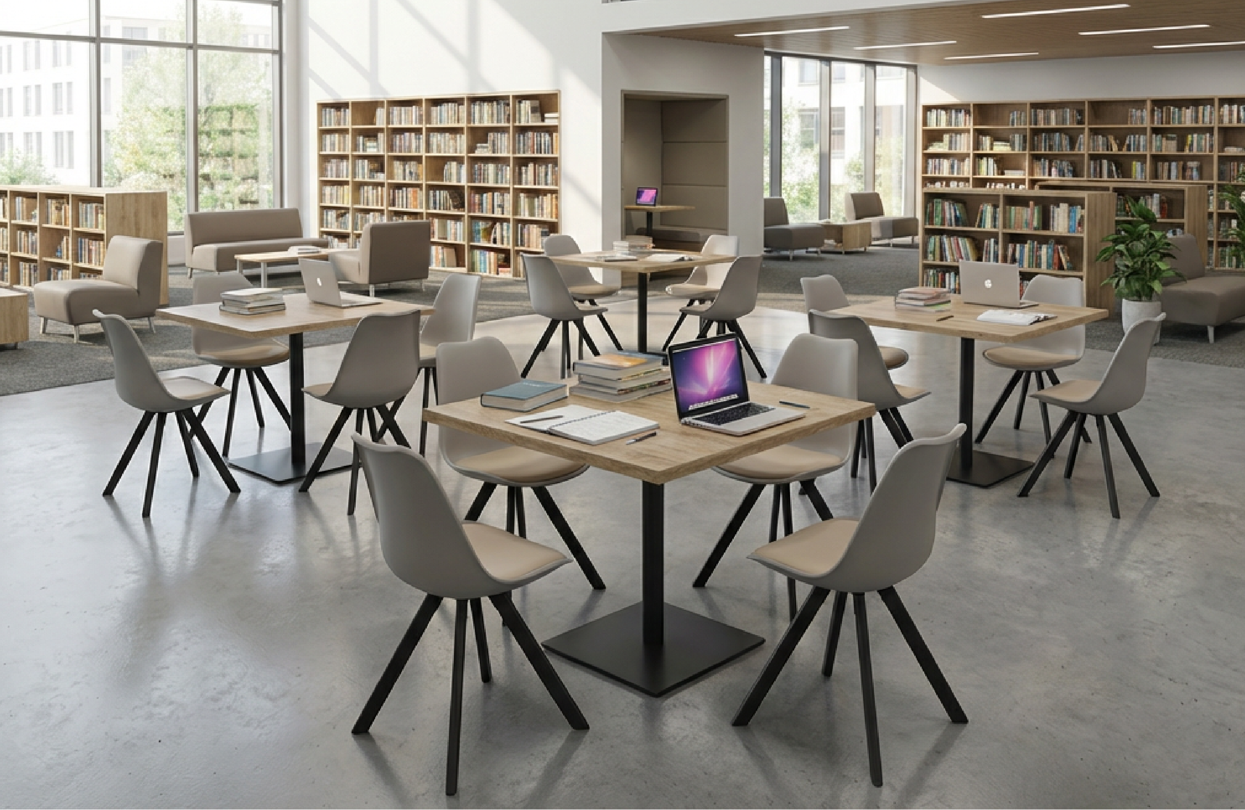 Модель легко вписывается в пространства с разным сценарием использования: от библиотек и столовых до общественных зон, где важны аккуратный силуэт и сдержанный характер мебели.