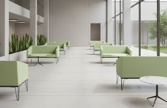 Простой, комфортный и лаконичный диван для общественных зон. Правильно подобранный цвет обивочного материала позволит подчеркнуть индивидуальность стиля.