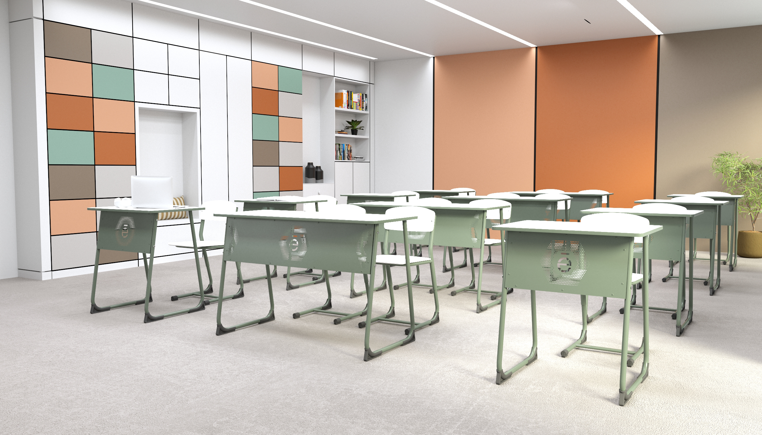 Компактная конструкция и прочная основа позволяют легко менять расстановку, а столешница с покрытием HPL уверенно справляется с ежедневными испытаниями учебного дня.